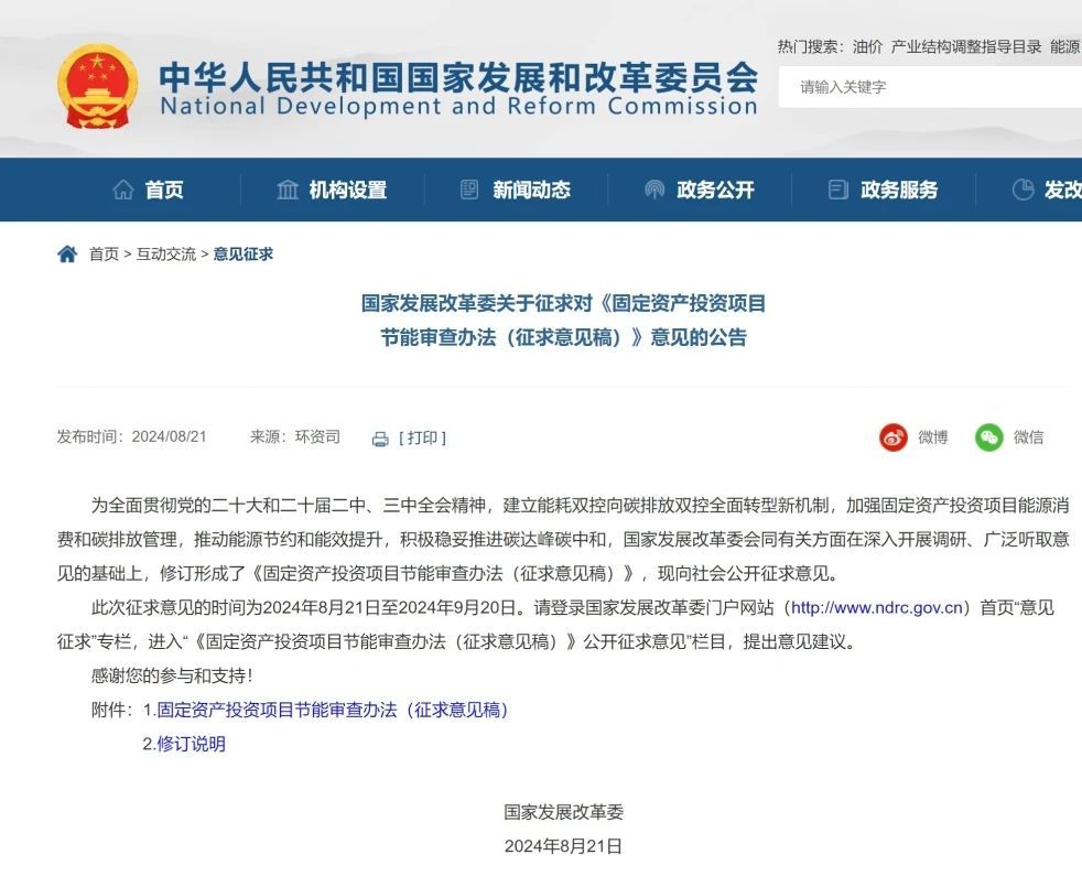 當前,節能降碳工作面臨新形勢新任務,需要更好發揮節能審查制度對產業轉型升級、支撐全社會節能降碳的重要作用,建立能耗雙控向碳排放雙控全面轉型新機制。近期,國務院印發《年節能降碳行動方案》,明確提出“嚴格固定資產投資項目節能審查”“建立重大項目節能審查權限動態調整機制,研究按機制上收個別重點行業特大型項目節能審查權限”“將碳排放評價有關要求納入固定資產投資項目節能審查,對項目用能和碳排放情況開展綜合評價”。為落實相關要求,國家發展改革委會同有關方面對《固定資產投資項目節能審查辦法》作了修改完善,起草形成了征求意見稿。